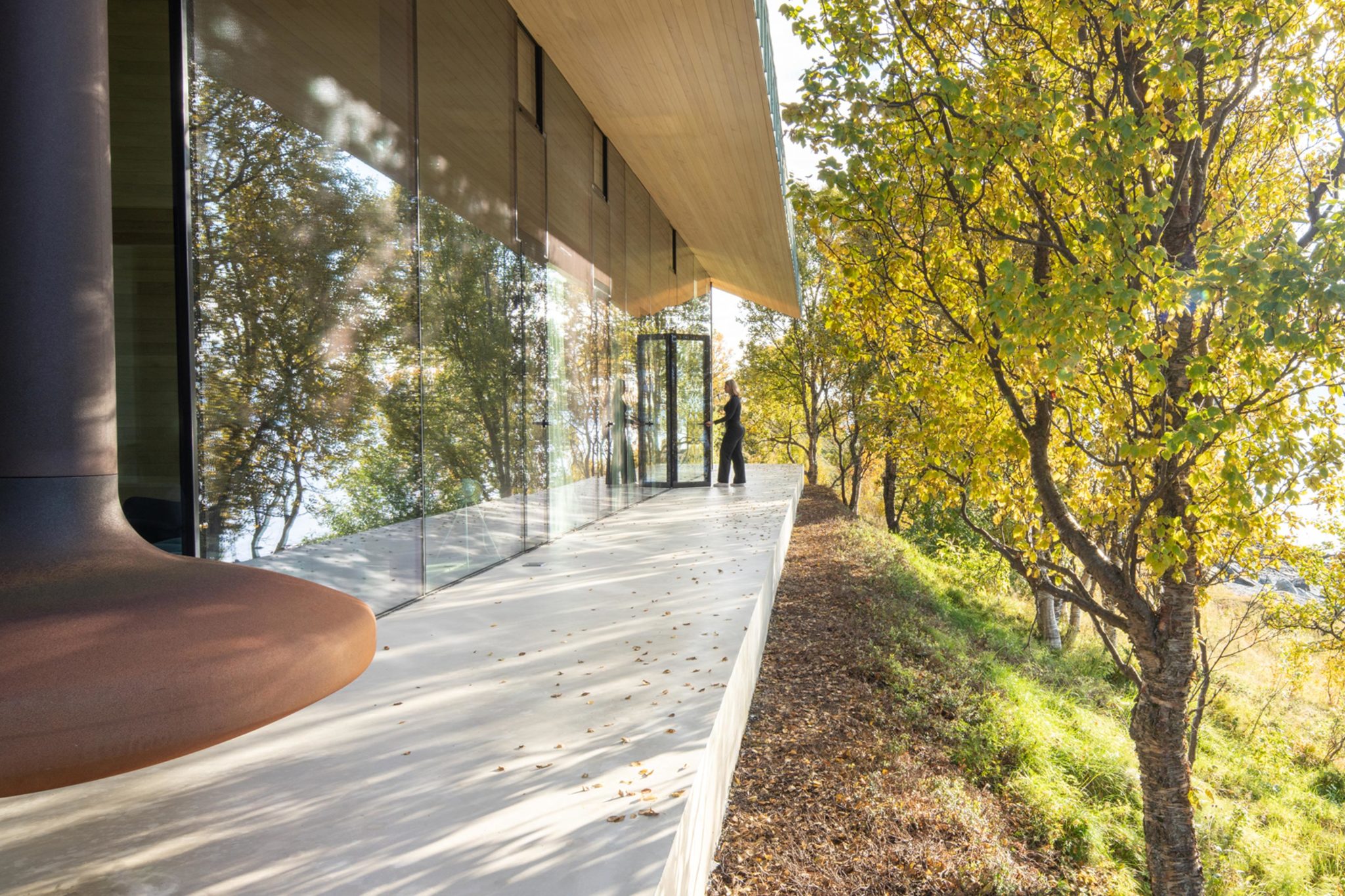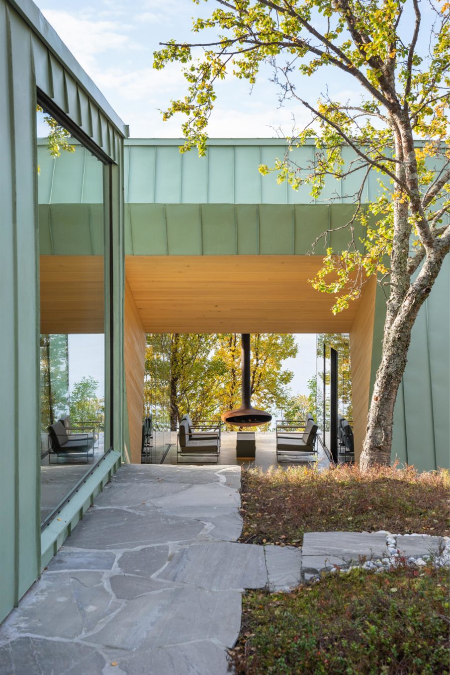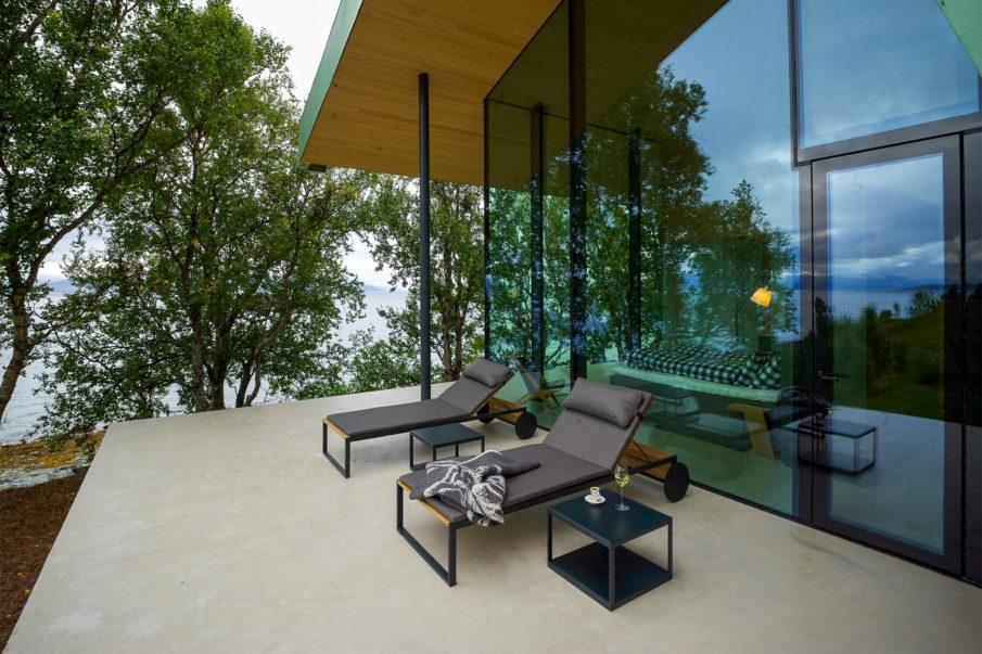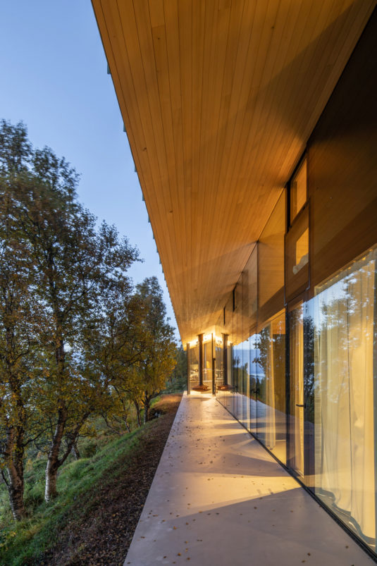Located in the remote Lyngen Alps, this project is partly a private retreat and a small lodge. Organised within a main structure comprising two units and terraces, a separate suite and a sauna across the creek. Respecting nature as the key inspiration for this project, the design endeavours to complement the site, with the main building stretching out across the natural plateau. High ceilings and seamless glass walls invite the sky and landscape into the building.