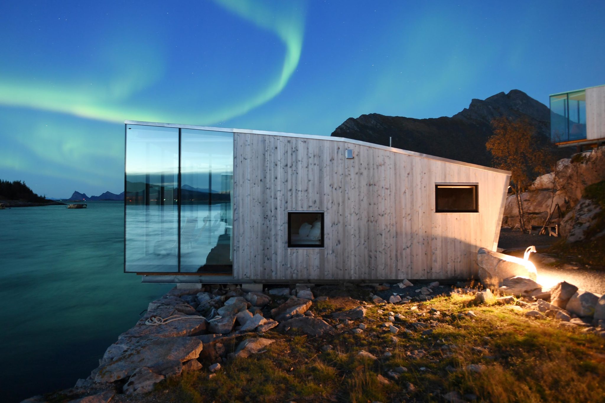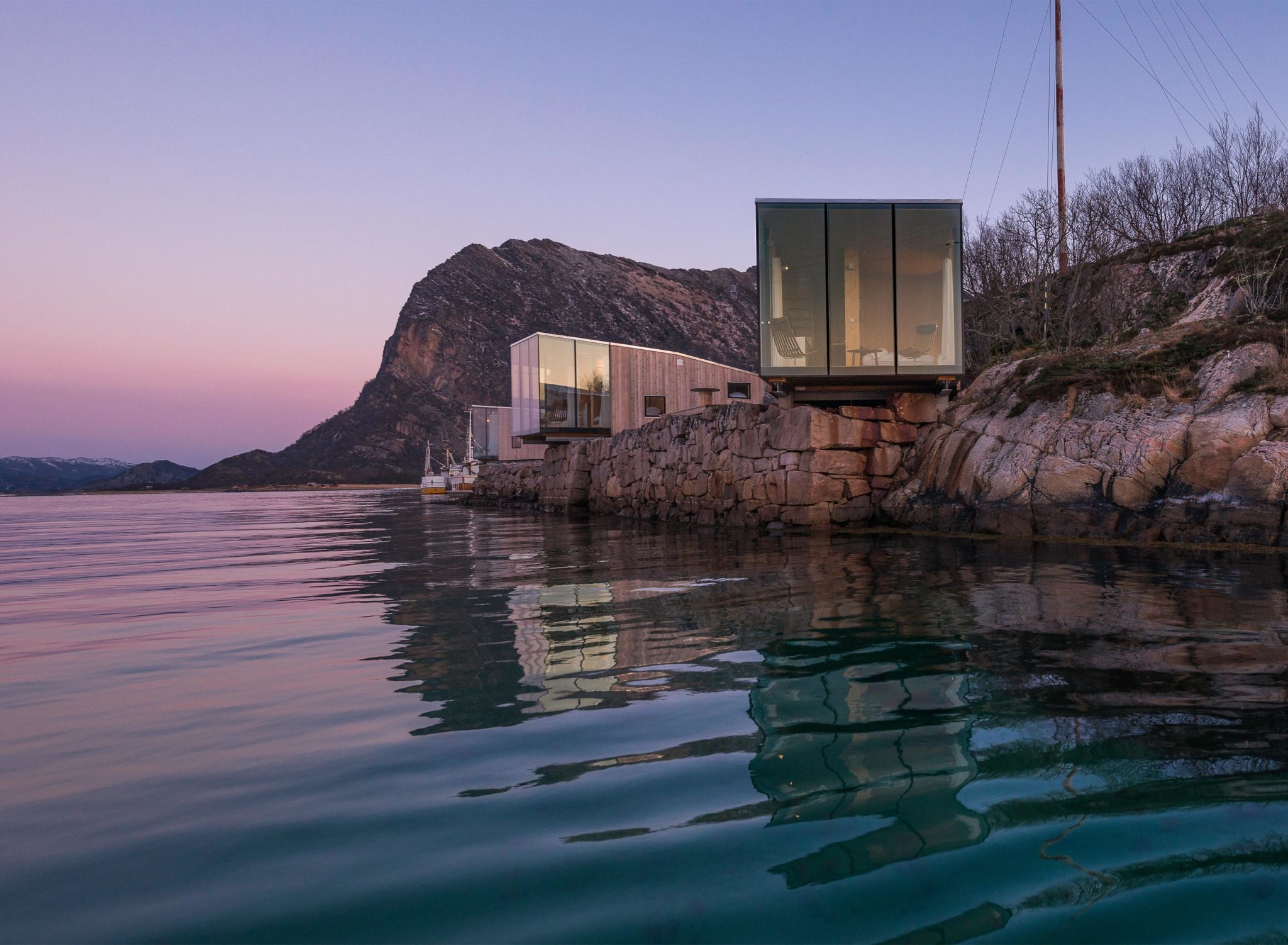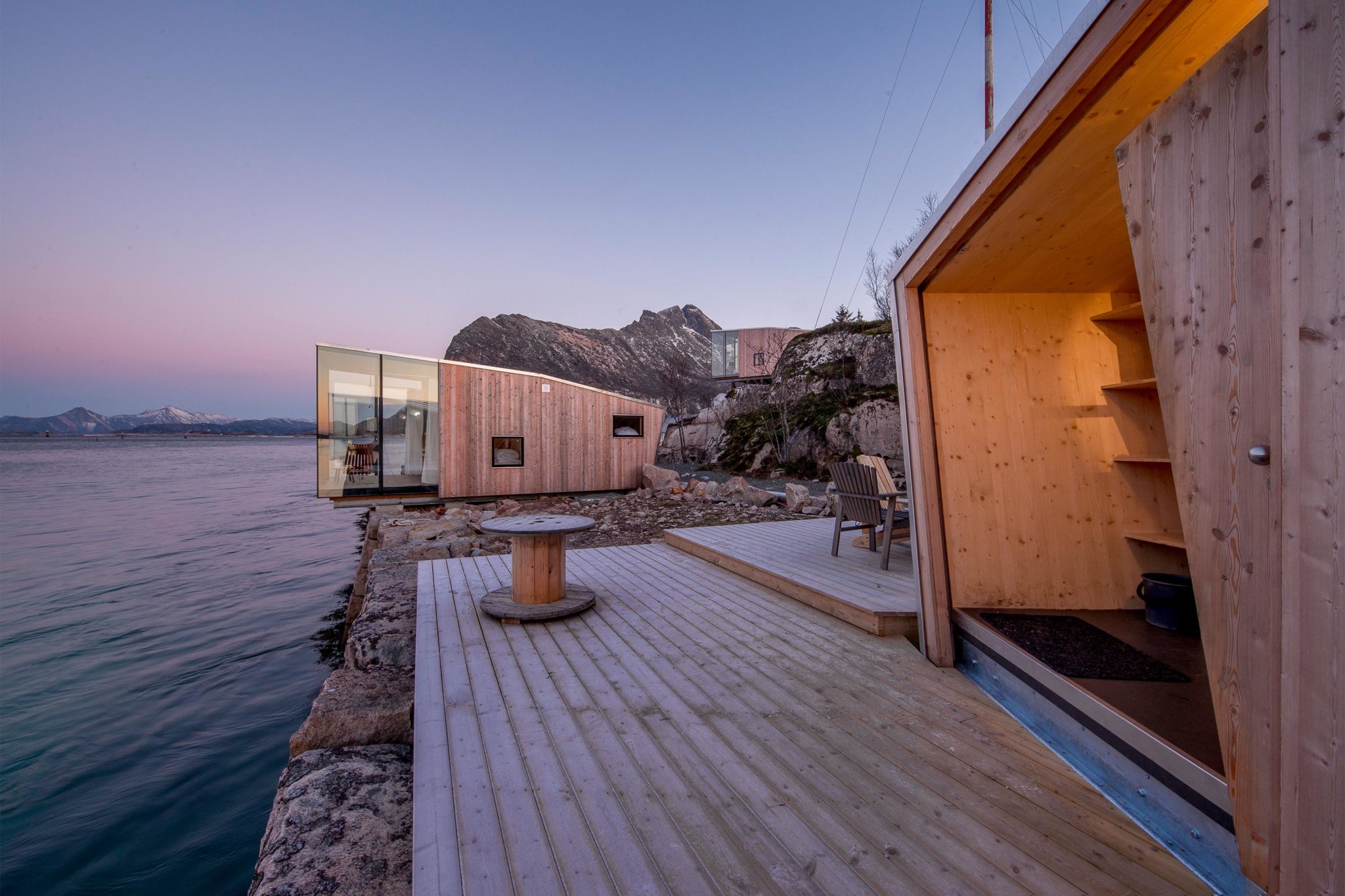 Manshausen Island is situated in the Steigen Archipelago off the coast of Northern Norway and is home to the world’s largest population of Sea Eagles. The Island’s position between majestic mountains and the Barents Sea is in itself the inspiration for the design.